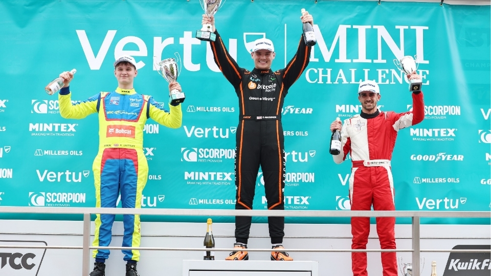 Chris Mackenzie picked up his first win in the Vertu MINI CHALLENGE with victory in the opening JCW Sport race of the weekend at Snetterton.