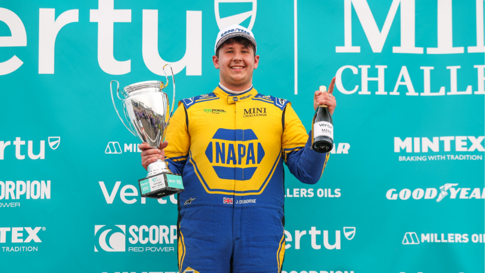 Jamie Osborne produced a fine drive in the second race of the Vertu MINI CHALLENGE season at Donington Park as he battled his way from ninth on the grid to score victory.