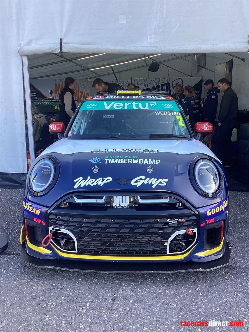 For sale is the full spec sequential gearbox. JCW mini raced this year in the championship with The brand-new 2026 championship facelift sections already fitted….. Run by JW motorsport for the last two seasons with the car being 100% reliable and never not Completed a race due to mechanical failure. The car has all controlled championship partsfitted and is fully compliant to regulations. The engine was a fresh build from Damico when we purchased the car that was fitted by the previous owner, it has been back to Damico several times this year for calibration and has always been given a positive health feedback. All mini challenge logbooks present for the car and engine certificates from the engine builders. Gearbox just rebuilt with new second third fourth and fifth gears. Diff Rebuilt with new diff Plates. Driveshaft rebuilt. Brand-new turbo fitted and calibrated mid-season. Engine serviced every other event, recent clutch fitted comes with a good selection of spares including used pads for testing and wheels. A good selection of testing tyres, comes with 12 wheels with tires on and some old rims that are slightly used which could be repaired and used for testing. I am in WoodChurch in Kent for collection. Thank you very much for looking.
