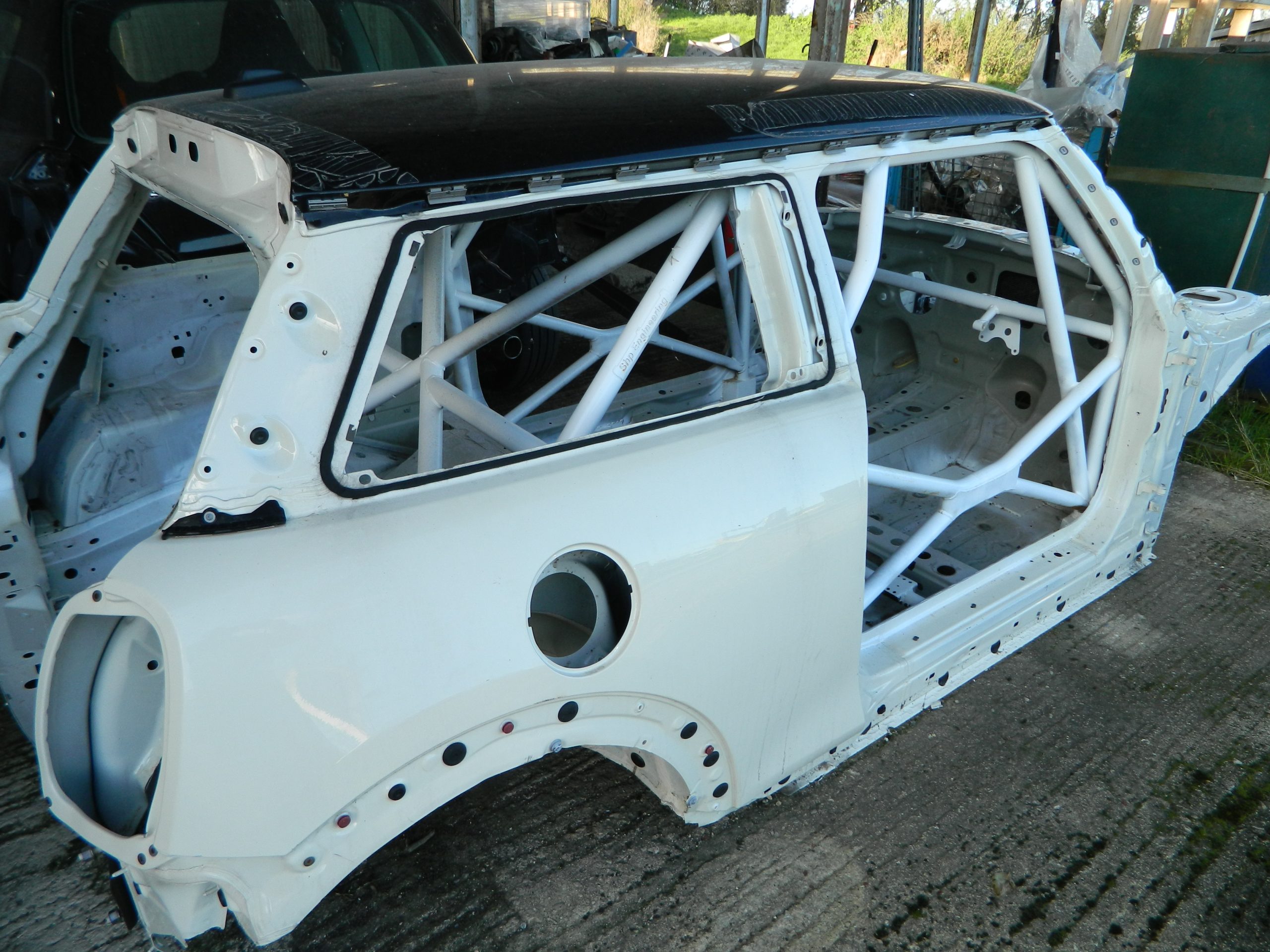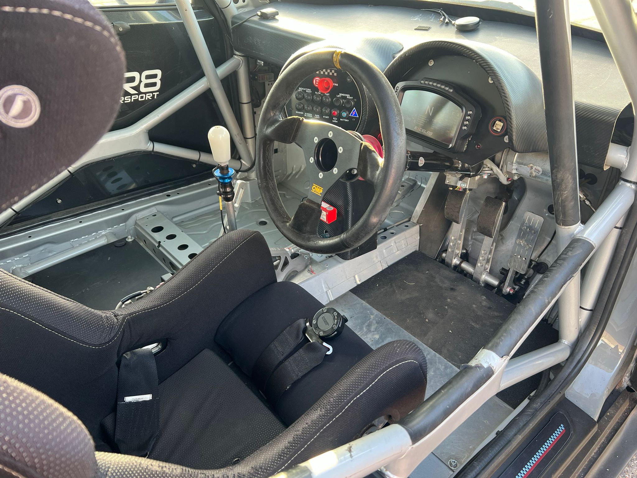 The car is painted in diamond white and is ready for your sponsor decals. Can be delivered in the UK.
