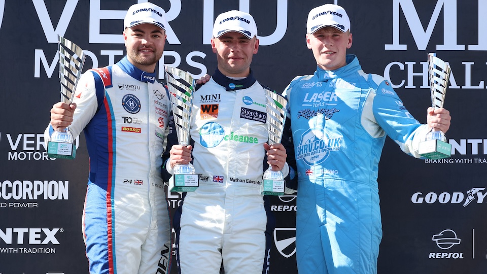 First time JCW winner Nathan Edwards expressed his view that the result of the opening race of the Vertu MINI CHALLENGE weekend at Oulton Park was ‘massive’ for the supporting Cooper category after three series graduates filled the top three places.
