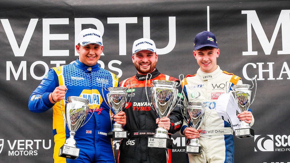 Dan Zelos overturned the penalty of the reverse grid draw to battle his way to a second win of the weekend as the curtain came down on the latest meeting for the Vertu Motors MINI CHALLENGE at Knockhill.