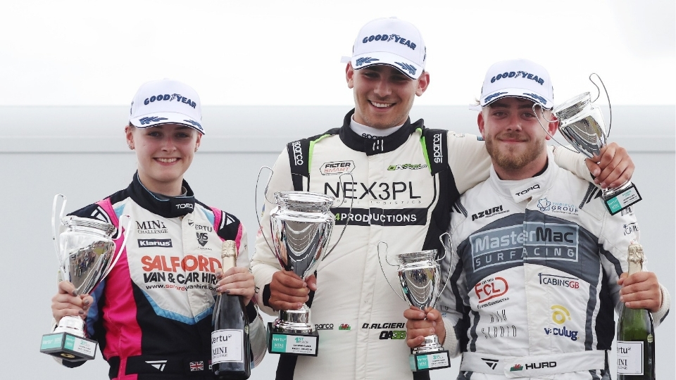 Olivier Algieri secured a lights-to-flag victory in the opening Vertu MINI CHALLENGE Trophy race of the weekend at Donington Park to move back onto five wins for the campaign.